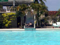 Slip Sliding Tre coming down the hotel pool's water slide at maximum speed. This was fun, but he was really amazed at how much water Tony could put into the air when he came down -- quite a lot more than Raphiel. |