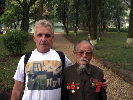 Cycling on Tet near Song Cau on the sothern coast. | Horst meets a two-war veteran near the Ho Chi Minh Tomb. |